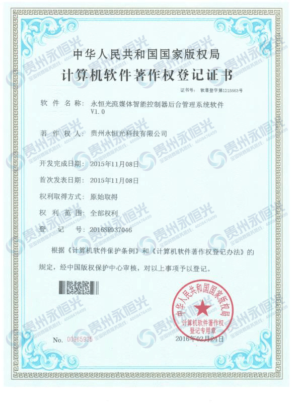 計算機軟件著作權(quán)登記證書三