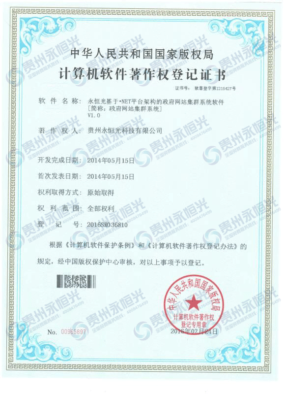 計算機軟件著作權(quán)登記證書五 >